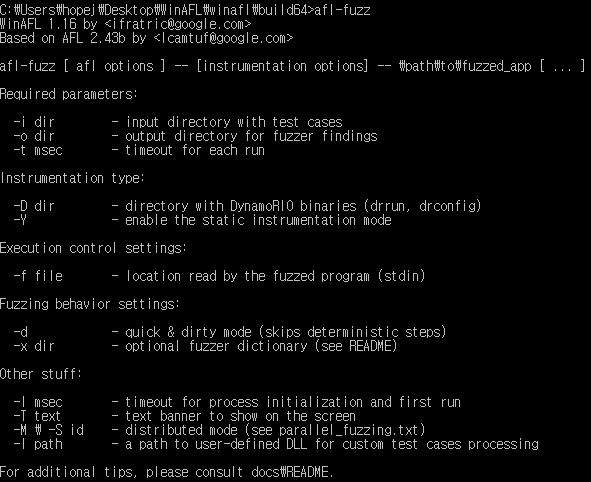 • WinAFL 폴더에서 build64 폴더 생성 이동