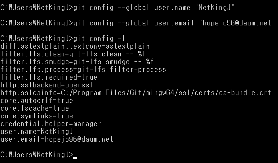 - git config --global user.email "hopejo96@daum.net"