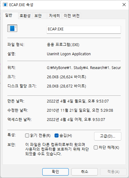 B 파일 : ECAP.EXE (의심)