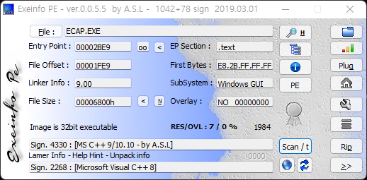 Tools : IDA Pro, Exeinfo PE
