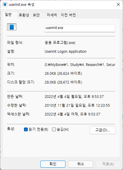 C 파일 : userinit.exe (정상) (Windows 7에서 추출)